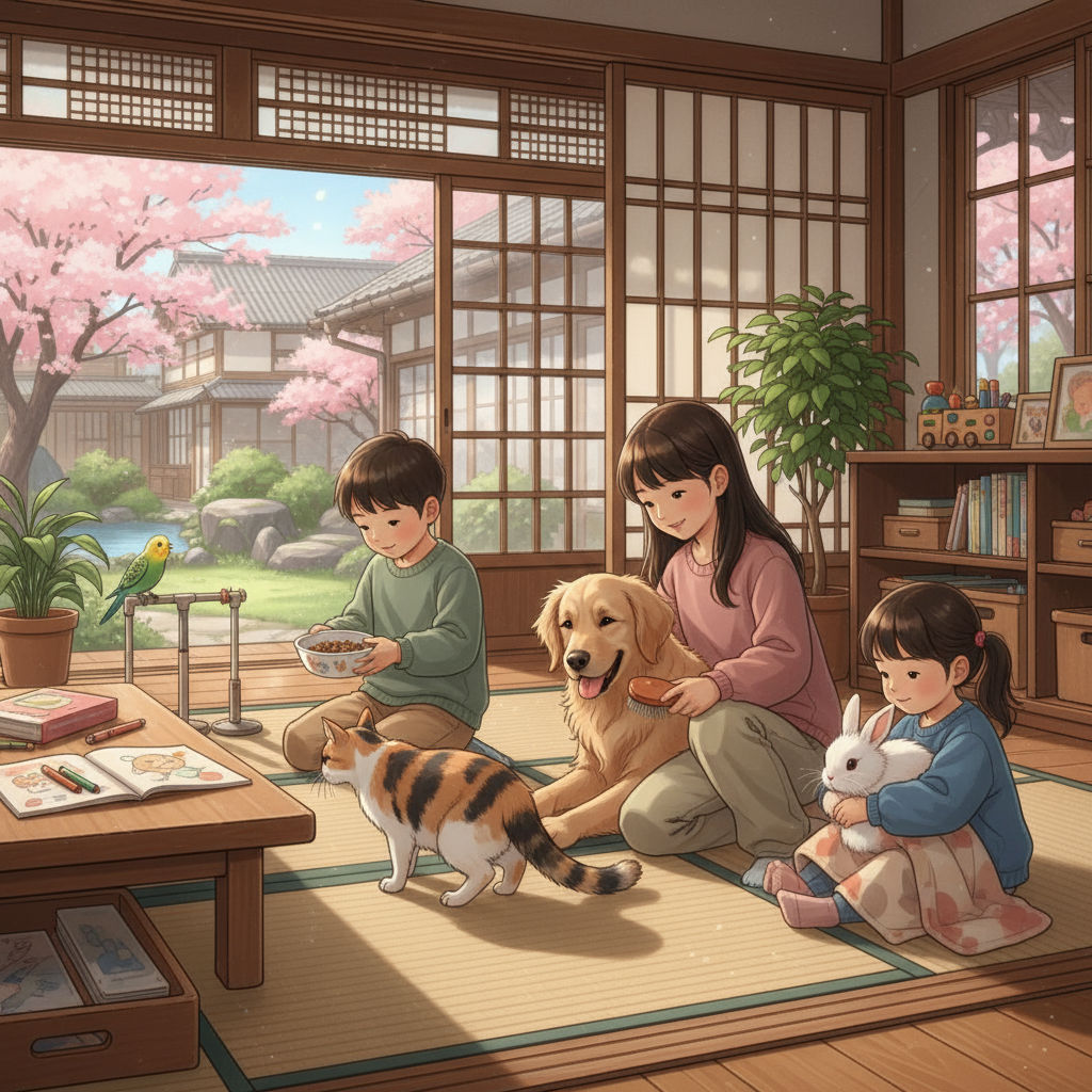 小さな手のひらが、ふわふわとした毛並みにそっと触れる瞬間。子供の顔には驚きと喜びが混ざり合った表情が浮かび、ペットもまた尻尾を揺らしながら応えてくれる。ペットとの生活は、子供たちにとってかけがえのない学びと成長の場となります。朝起きてすぐにペットの様子を確認し、学校から帰ればまっさきに抱きしめる。そんな日常の中に、言葉では言い表せない温かな絆が育まれていくのです。